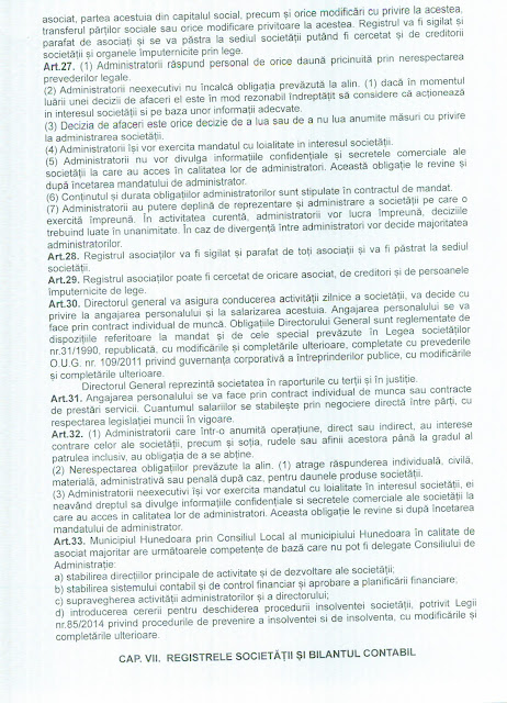 Act Constitutiv modificat - 28.02.2020 Actul constitutiv modificat în urma demisiei d-nului Klusch Mihail din data de 01.02.2020. Cu această ocazie a fost constituit un nou Consiliu de Administrație format din : - SZABO DORINA- FELICIA- director general - MUNTEAN GELU- FLORIN- presedinte consiliu de administratie - STOENESCU VALENTIN- ADRIAN- administrator neexecutiv